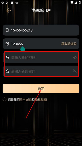 3、输入验证码并填写新密码后,点击确定,完成新用户注册操作。