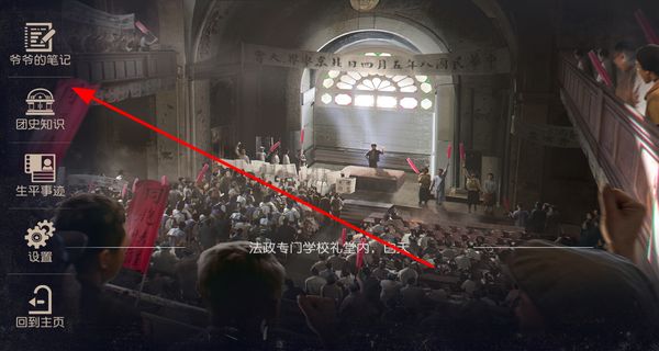 2、查看爷爷的笔记,在菜单中选择爷爷的笔记选项,了解历史和故事内容,丰富叙事体验。