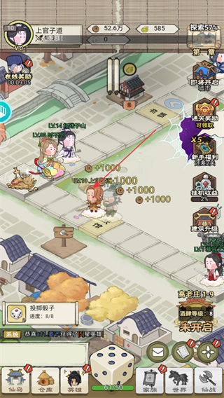 1、打开游戏进入游戏系统主页,点击下方的骰子进行角色在地图上的步数移动。