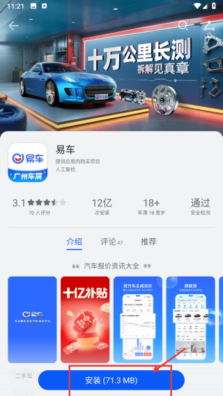 4、在应用详情页,点击安装按钮,开始安装易车应用。