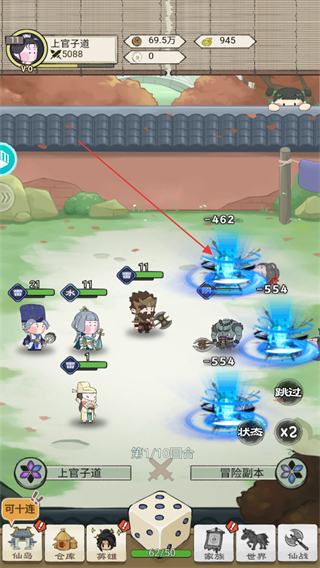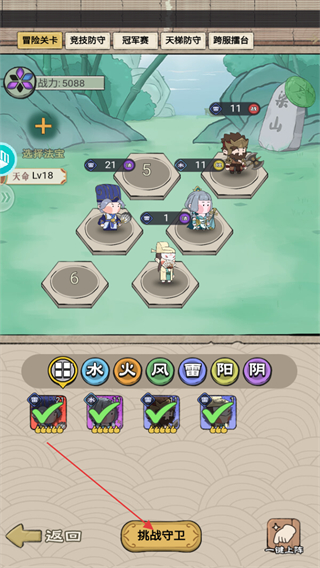 2、关卡挑战采用回合制作战方式,击败所有守卫即为关卡胜利。