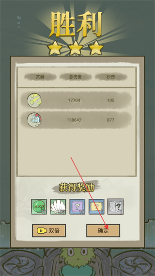 4、击退所有怪物即为关卡胜利,可以获得丰厚的奖励,点击下方确定按钮获取奖励并返回主页。