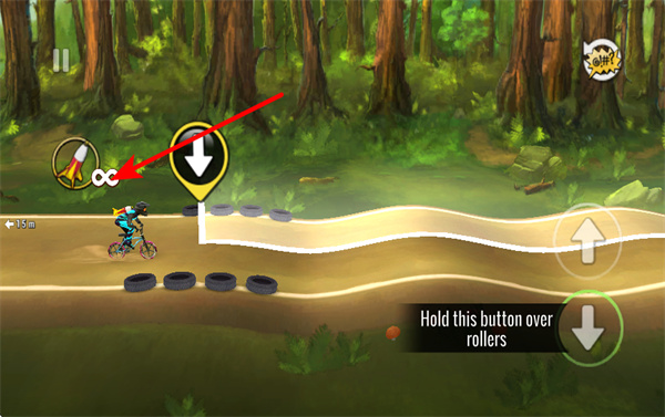 2、长按向下按钮,可在下坡时泵动车身提升速度,这是优化骑行节奏的核心操作,使用时需根据地形变化及时调整。