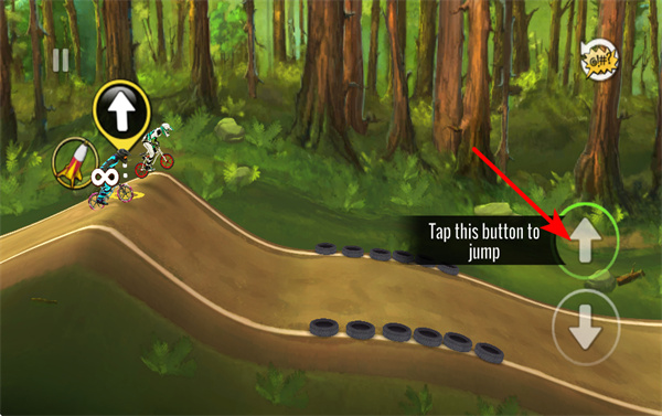 4、点击向上按钮,可在坡道处触发跳跃动作,这是通过障碍和保持领先的关键策略,跳跃时需关注坡道的高度距离。