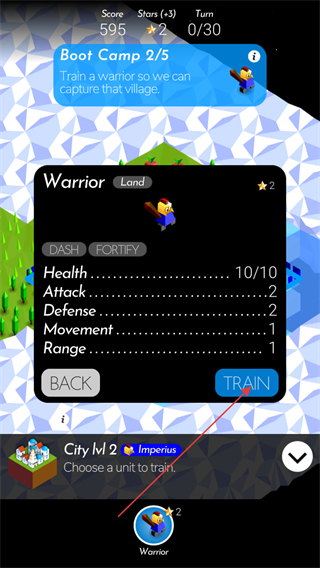 2、点击TRAIN按键进行获取,士兵将会诞生在城堡之中。