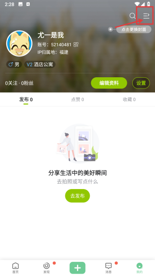 2、在个人中心页面,点击右上角菜单图标,弹出功能菜单。