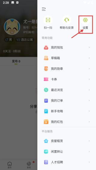 3、在功能菜单中,点击设置选项,进入设置界面。