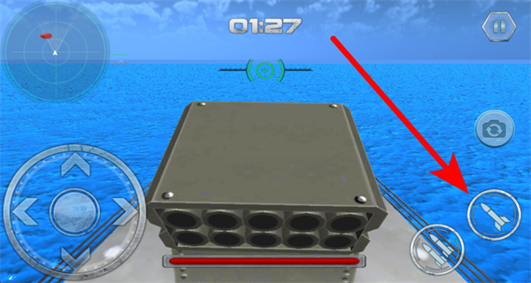 2、游戏中点击右侧导弹发射按钮,操控驱逐舰发射武器,注意观察雷达和目标位置,确保攻击指令准确下达。