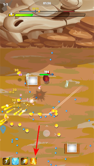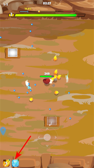4、收集地图中的金币和蓝色水滴资源,可用于提升角色属性或解锁新技能,收集时需注意周围敌人威胁。