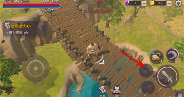 1、遇到桥梁等场景时,点击炸弹图标可破坏桥梁阻碍敌人,这是战术策略的关键操作,使用时需注意炸弹的范围和触发时机。