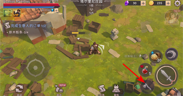 2、点击工具图标可进行资源收集或建筑操作,这是推进完成生意人的订单等任务的关键步骤,需关注任务需求的资源类型。