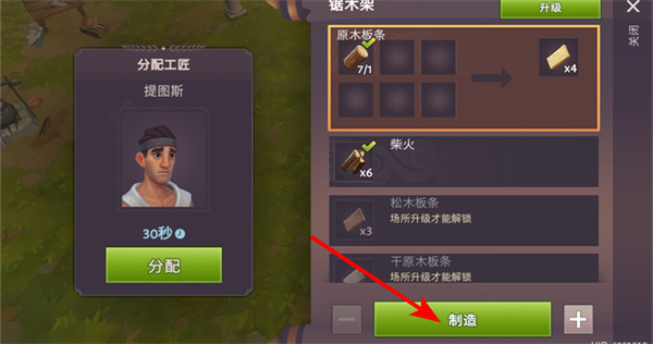 4、在锯木架等建筑中,将原木等资源制造成木板条等道具,这是资源利用的关键操作,制造时需确保资源充足并合理分配工匠。