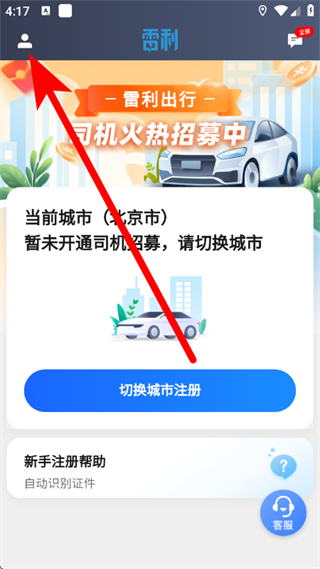 1、打开雷利出行司机端,点击页面左上角的个人图标。