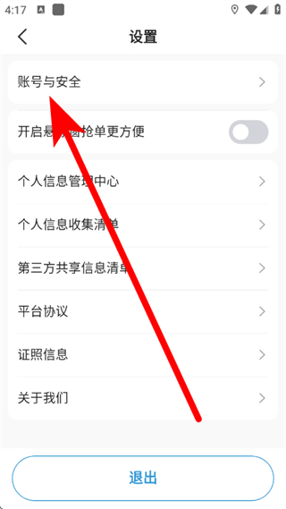 3、在设置页面,点击账号与安全,进入账号与安全页面。