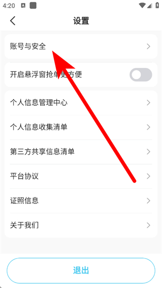 3、在设置页面,点击账号与安全,进入账号与安全页面。