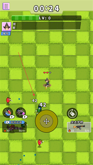 1、操控角色在绿色格子地图中移动,用突击步枪攻击怪物,注意保持移动躲避怪物攻击。