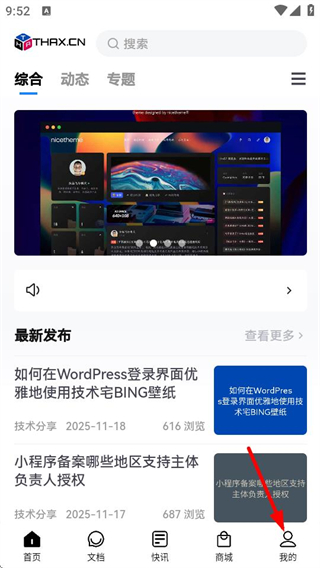1、在技术宅首页,点击右下角我的选项,进入个人中心页面。