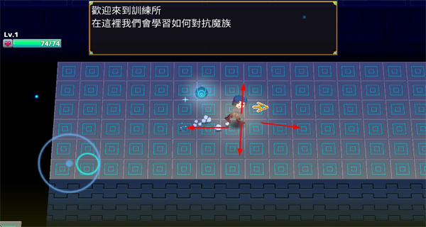 1、进入训练所后,操控角色上下左右移动,学习对抗魔族的基础操作,开启战斗学习之旅。