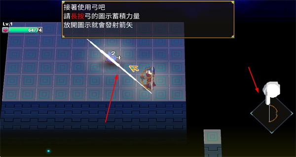 4、使用弓攻击,长按弓的图示蓄积力量,放开图示发射箭矢,掌握远程攻击技巧。