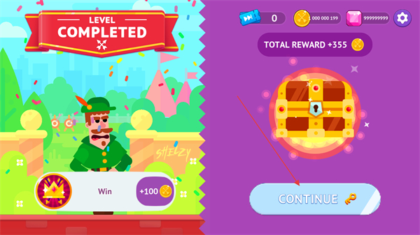 4、完成关卡后点击CONTINUE进入下一关,随着关卡推进,敌人的位置和移动方式会更复杂,需不断优化射击策略。