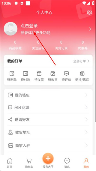 2、在个人中心页面点击登录,进入用户登录界面。