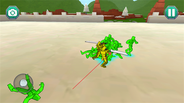 1、操控绿色兵种在战场移动,与敌方兵种混战,利用数量优势消耗敌人。