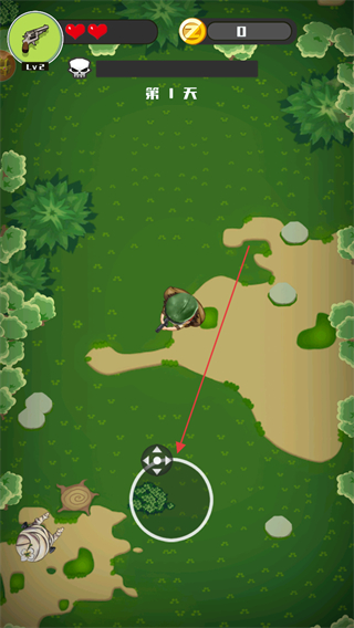 1、操控角色在地图移动,寻找僵尸目标,瞄准后射击消灭僵尸,获取金币。