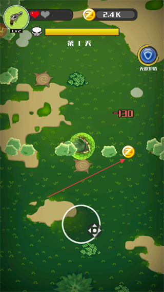3、躲避僵尸攻击如被攻击扣130血,收集金币,积累资源如2.4K。