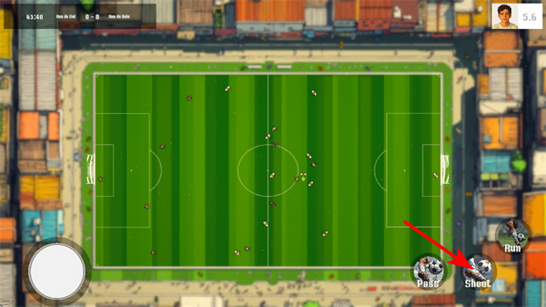 2、点击Shoot按钮,可尝试射门得分,射门时需关注球门位置和防守球员分布,确保射门成功率。