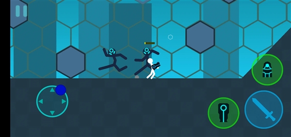 2、点击右侧剑形按钮,让火柴人挥舞长剑攻击敌人,可进行跳跃攻击等动作。
