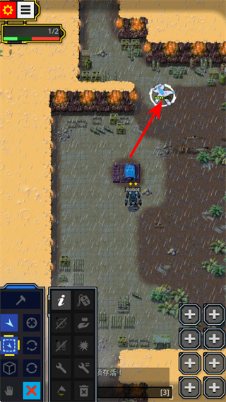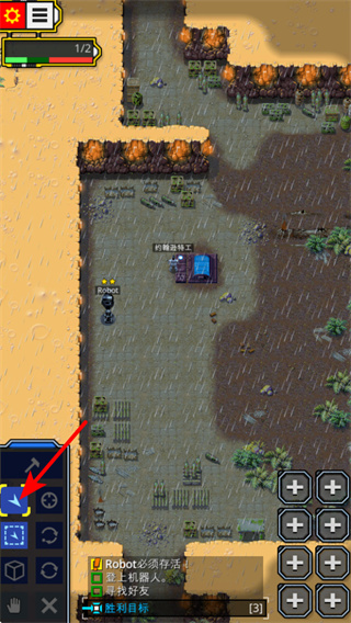 2、游戏中通过左侧方向键操控机器人移动,这是探索地图和完成任务的基础操作,移动时需留意地形障碍和敌人分布。
