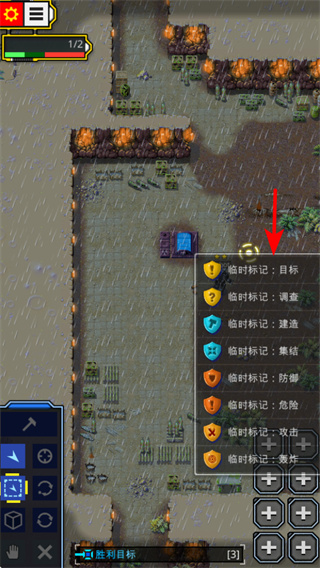 1、使用临时标记功能,目标等选项标记关键区域,管理资源关键操作,结合任务目标和地形特点。