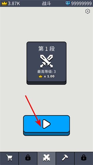 1、进入游戏后,点击蓝色开始按钮可开启战斗阶段,策略对决的关键操作,点击时需确认当前战斗阶段的等级和奖励。