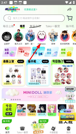 1、在MITAKO虾淘首页,点击chiikawa分类选项,进入对应商品页面。