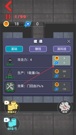 4、点击房间任意空白区域,可以建造基础攻击设施,防御噬梦者的攻击。