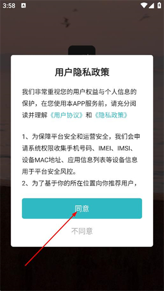 1、在APP用户协议弹窗中,点击同意,进入登录注册页面。