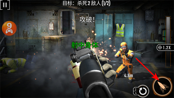 2、游戏中操控枪械瞄准敌人身体部位,射击时需关注敌人的位置和移动,优先攻击威胁大的敌人以完成关卡目标。