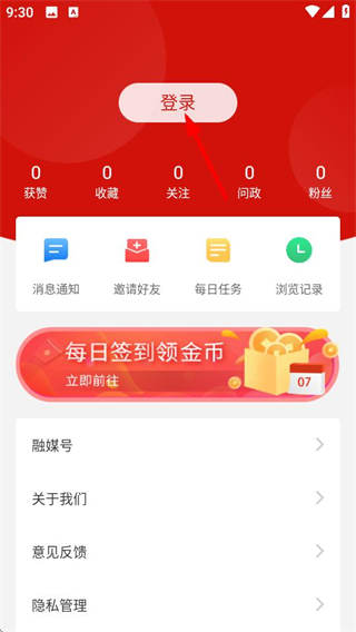 2、在个人页面,点击登录按钮,进入登录选择页面。