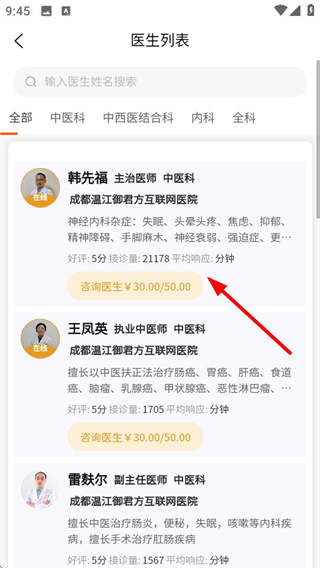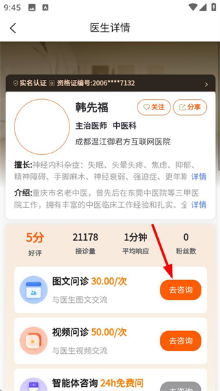 2、在医生列表页面,选择要咨询的医生,进入医生详情页面。