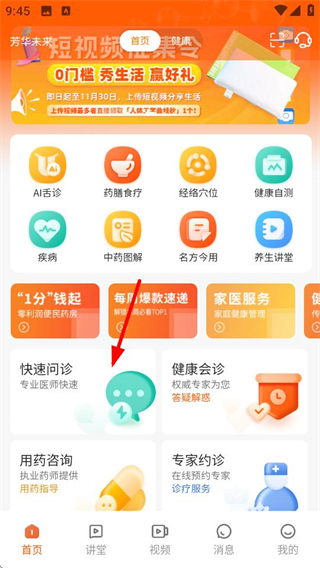 1、在芳华未来首页,点击快速问诊选项,进入医生列表页面。