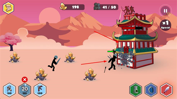 不仅能指挥军队进攻敌方基地,还需合理布局自身基地防御,建造防御工事与箭塔,抵御敌方突袭,兼顾进攻与防守的双重策略乐趣。