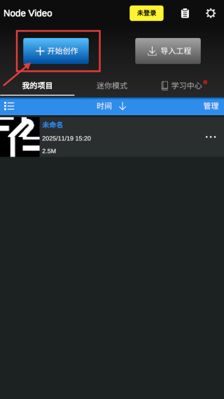 1、打开Node-Video应用,点击开始创作按钮,进入视频编辑项目创建页面。