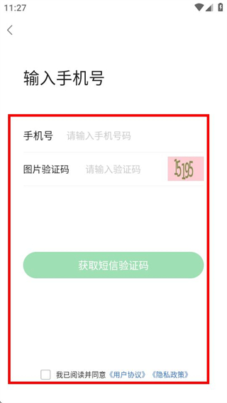 4、在输入手机号页面,填写信息,勾选协议后即可完成注册流程。