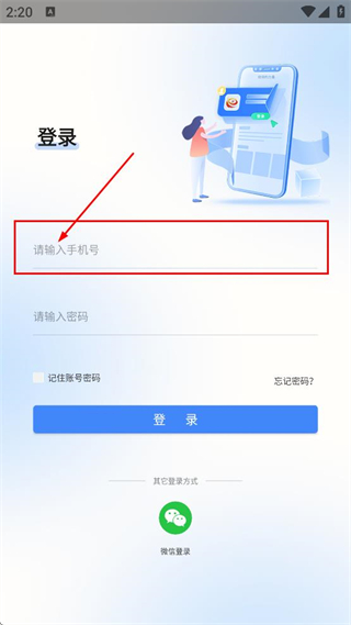 2、在登录页面,输入手机号,进行下一步的操作。