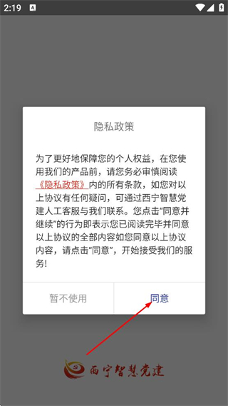 1、在隐私政策弹窗中,点击同意,进入登录页面。