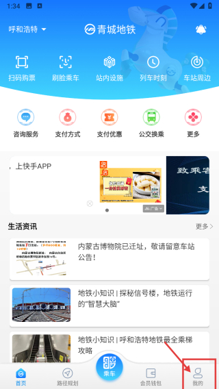 1、打开青城地铁应用,点击底部我的选项,进入个人中心页面。