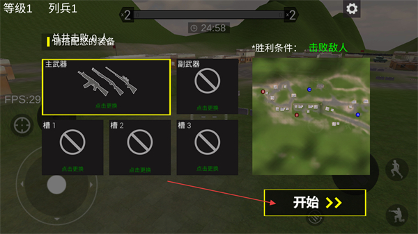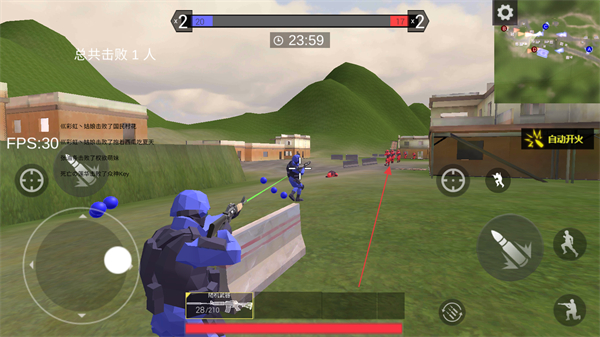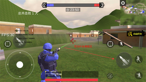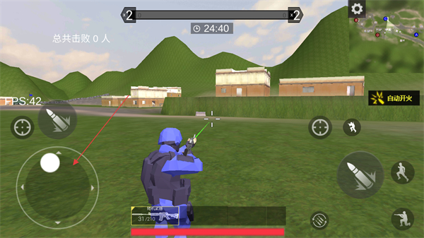 2、用左侧虚拟摇杆移动角色,在战场中探索,寻找敌人位置。