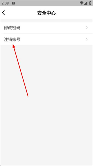 4、在安全中心页面点击注销账号,进入注销账号页面。