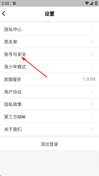 3、在设置页面点击账号与安全,进入安全中心页面。