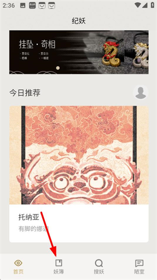 1、在纪妖首页,点击底部妖簿选项,进入妖簿页面。